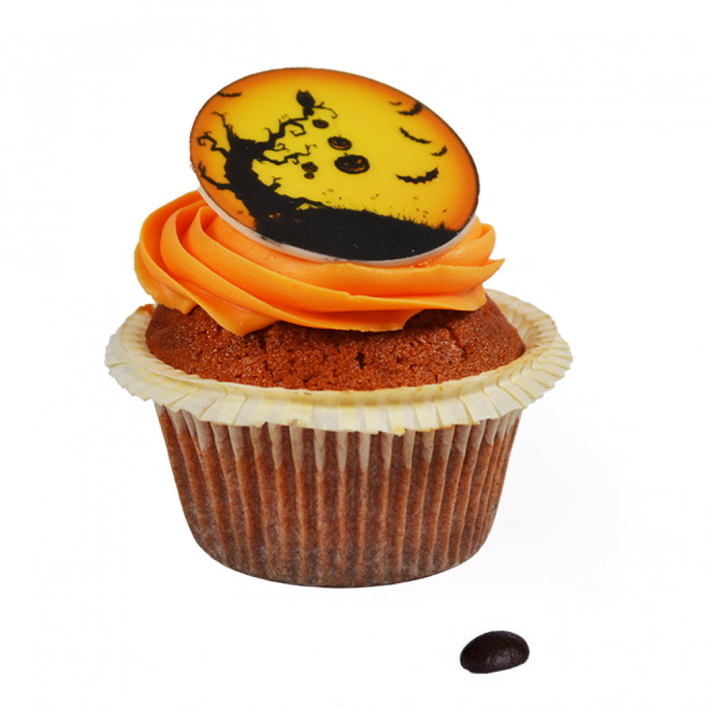 Изберете лакомството пред белите с нашия тематичен хелоуински къпкейк. Ванилов аромат, фина текстура и ефектна украса, създадени специално за празничното настроение на Хелоуин.