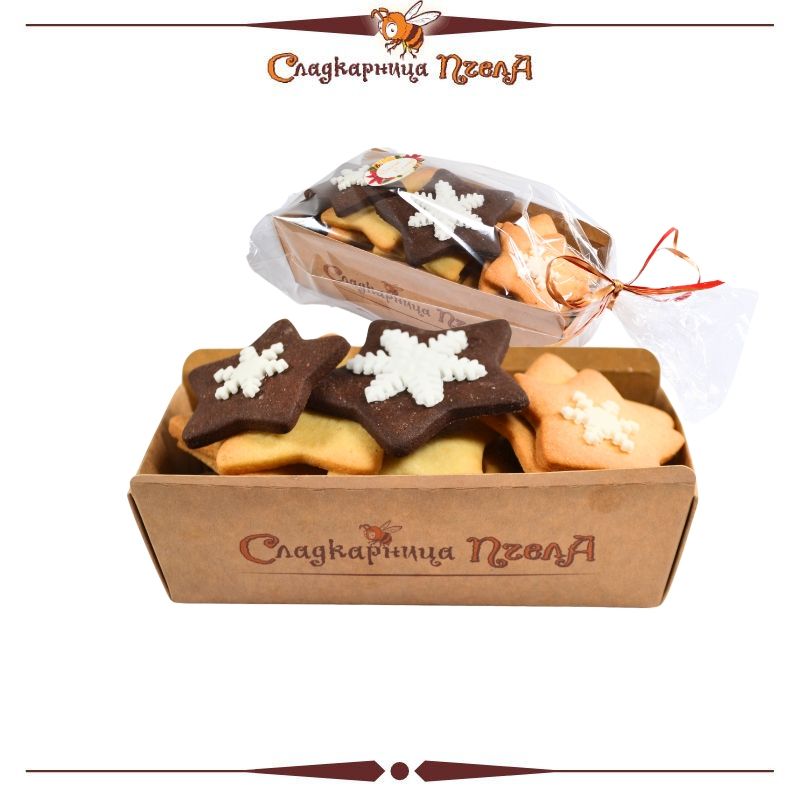 - Изрязани и декорирани в класически коледни форми - звездички със снежинки.