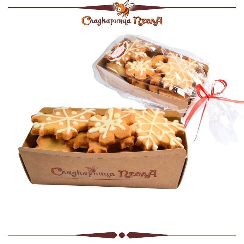 - Изрязани и декорирани в класически коледни форми - звездички със снежинки.